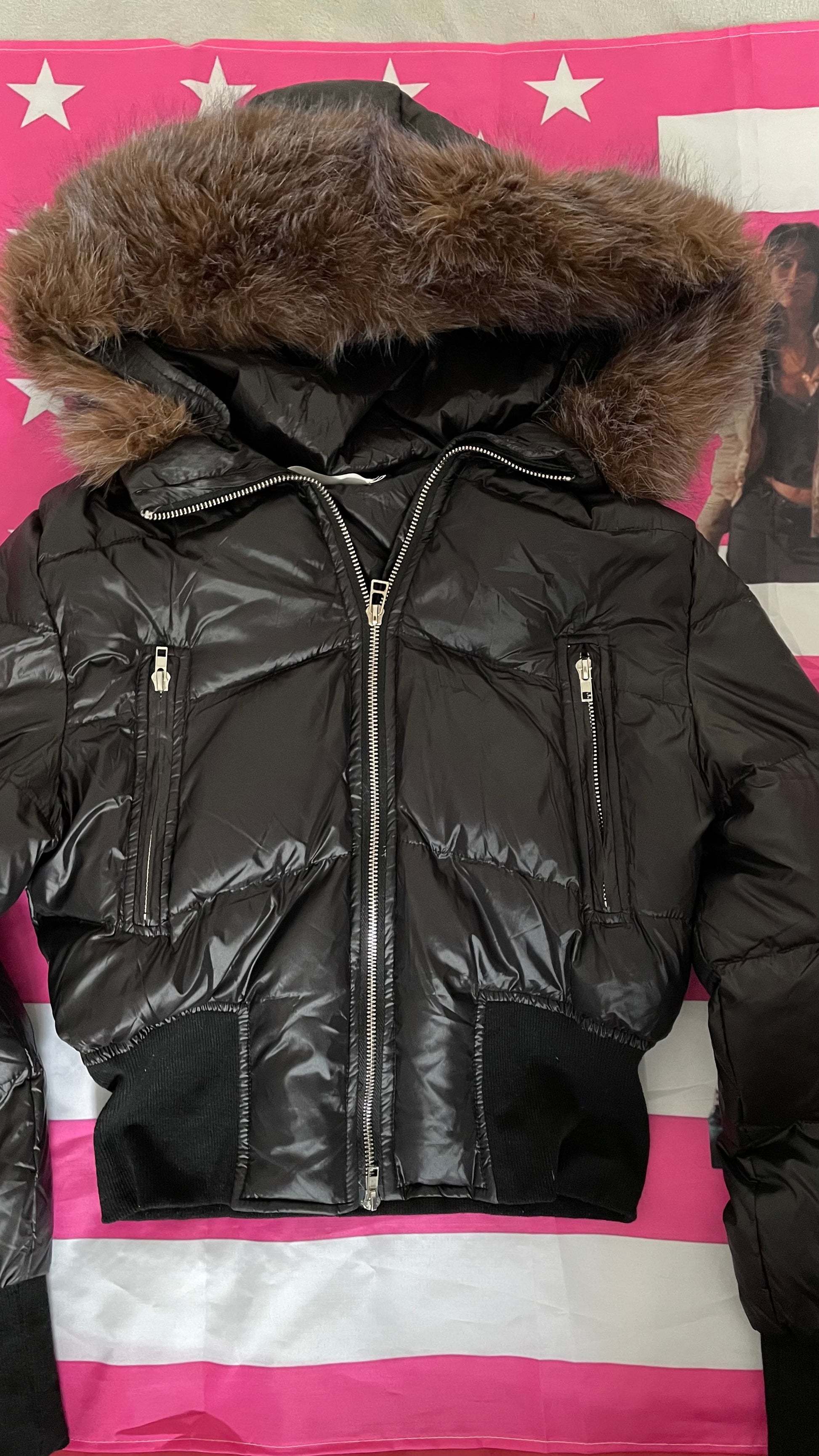 Fluffy brown fur winter jacket